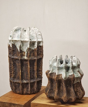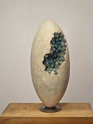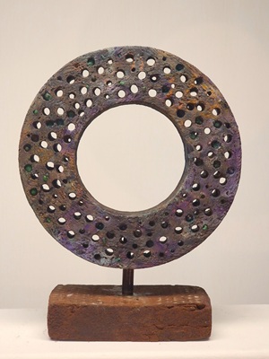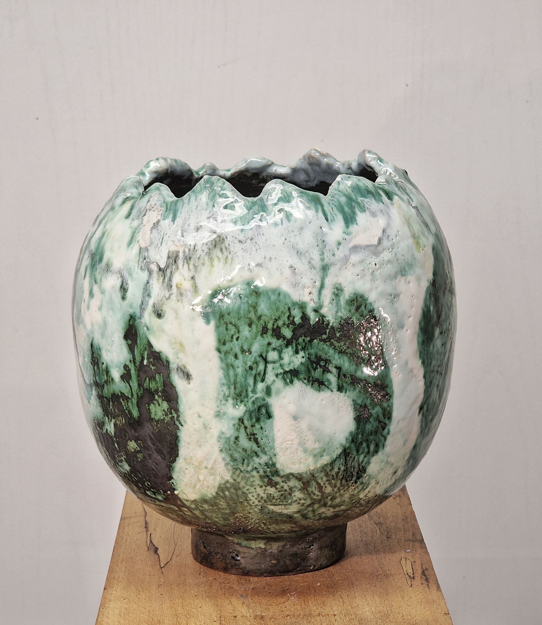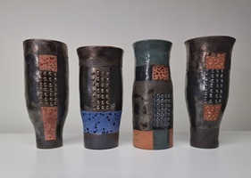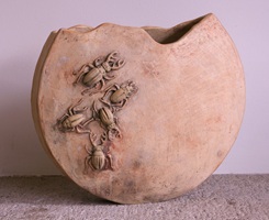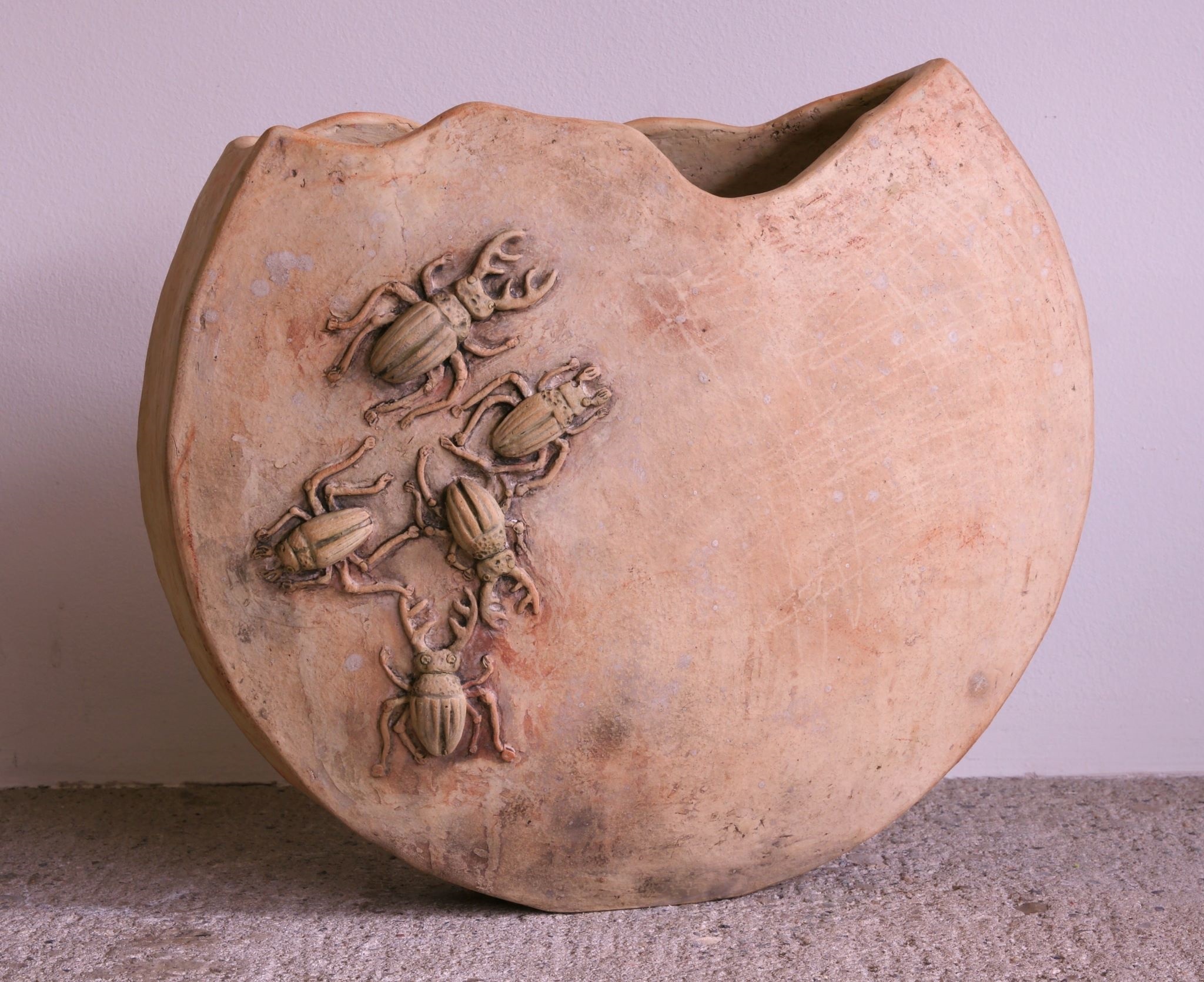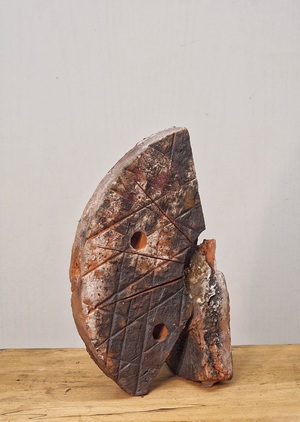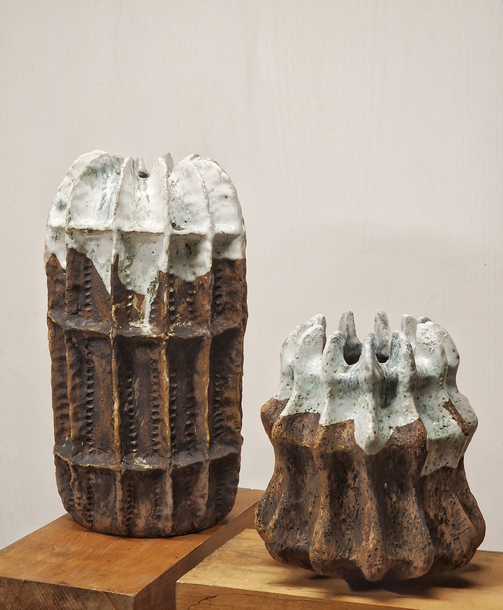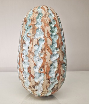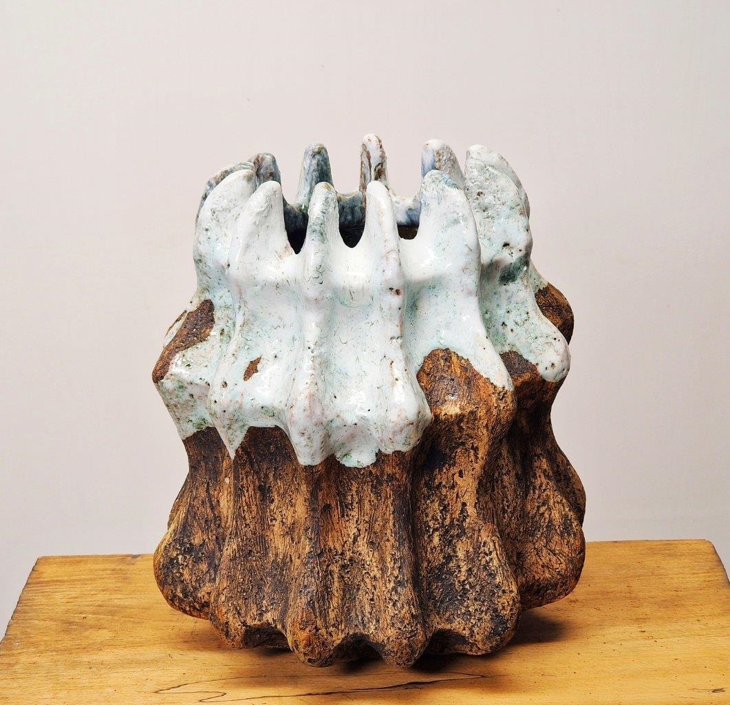 Oftmals entscheide ich mich spontan keramische Experimente an meinen Objekten auszuprobieren. Reizvolle Ergebnisse erziele ich wenn ich policoloren Ton vermenge und nach dem Brand durch Abrieb die Farbunterschiede hervorhebe. Gerne verwende ich Oxide , die auf der Oberfläche eingebrannt werden. Das Experimentierfeld ist hier immens.